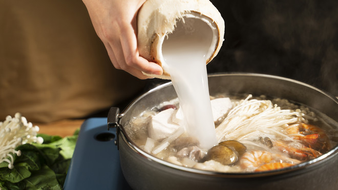2.兩瓶椰子水倒進(jìn)鍋里